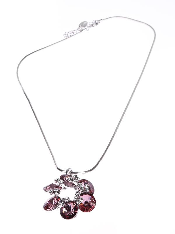 “Flower” pendant with nickel free chain, with red Swarowski elements