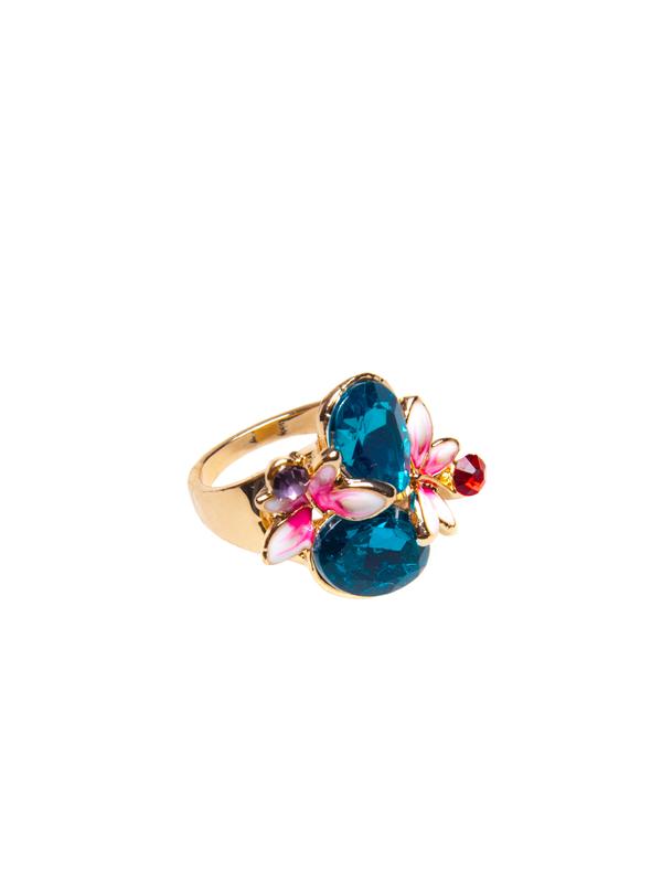 Zinc alloy ring with multicolor gemstones