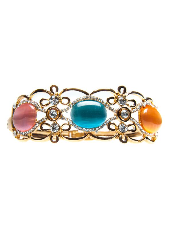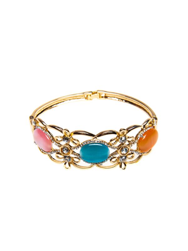 Bracelet with oval multicolor gemstones and crystal details