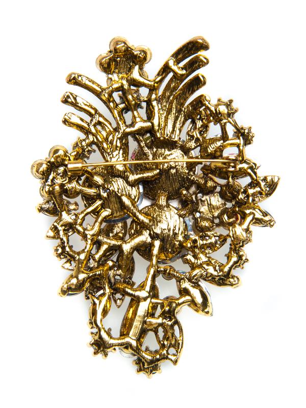 Flower brooch with multi-shape cut gemstones and multicolor crystal details