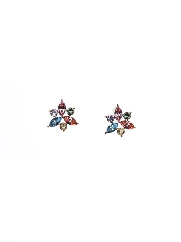 Stud floral earrings with multicolor Swarowski elements