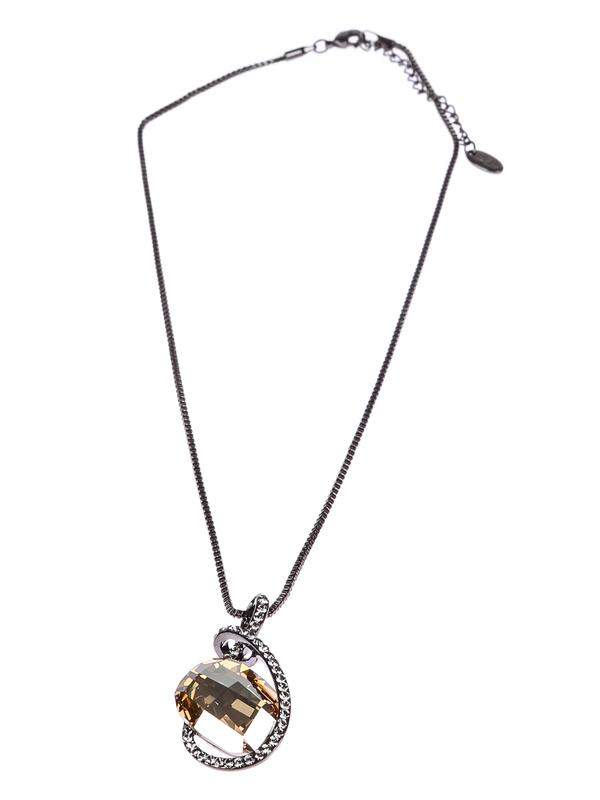 “Oval Stone” pendant with nickel free chain, with yellow and white Swarowski elements